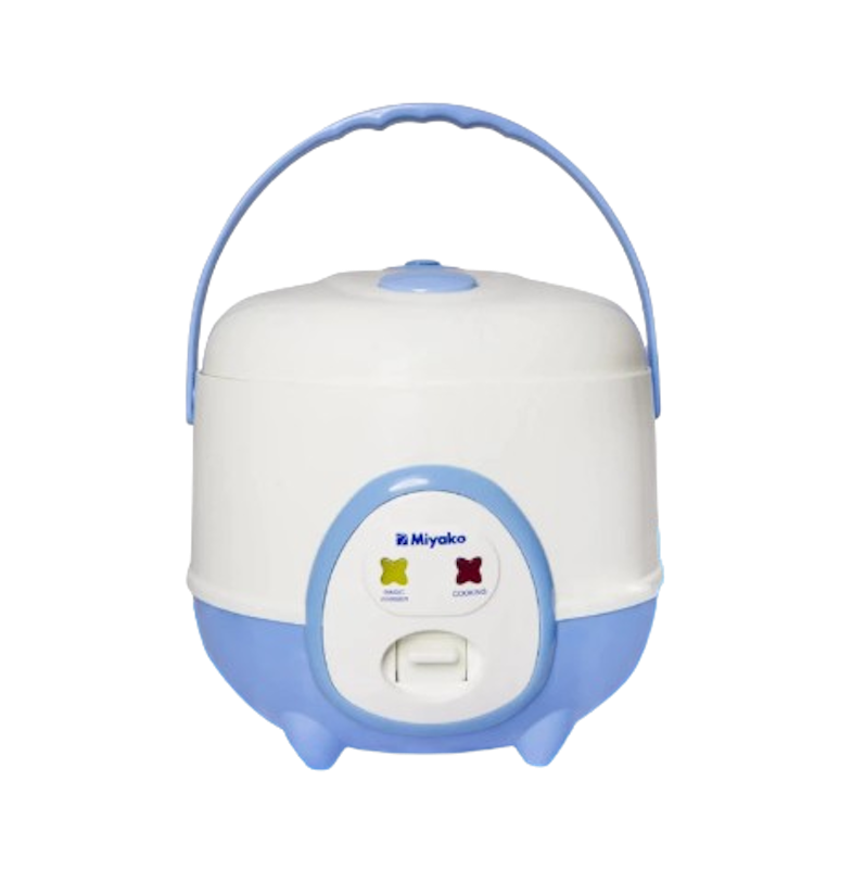 Miyako Magic Warmer Plus, rice cooker 3-in-1 dengan kapasitas 0,6 liter, praktis untuk tinggal sendiri. Dilengkapi panci antilengket dan pengatur sirkulasi nasi.
