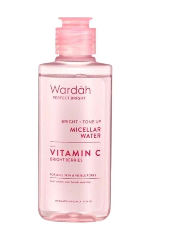 Wardah PERFECT BRIGHT Bright+Tone Up Micellar Water dengan ekstrak berry dan vitamin B3, C, E membantu mencerahkan dan meratakan warna kulit. Bebas alkohol dan pewangi, aman untuk kulit sensitif, membuat kulit terasa segar dan ternutrisi.