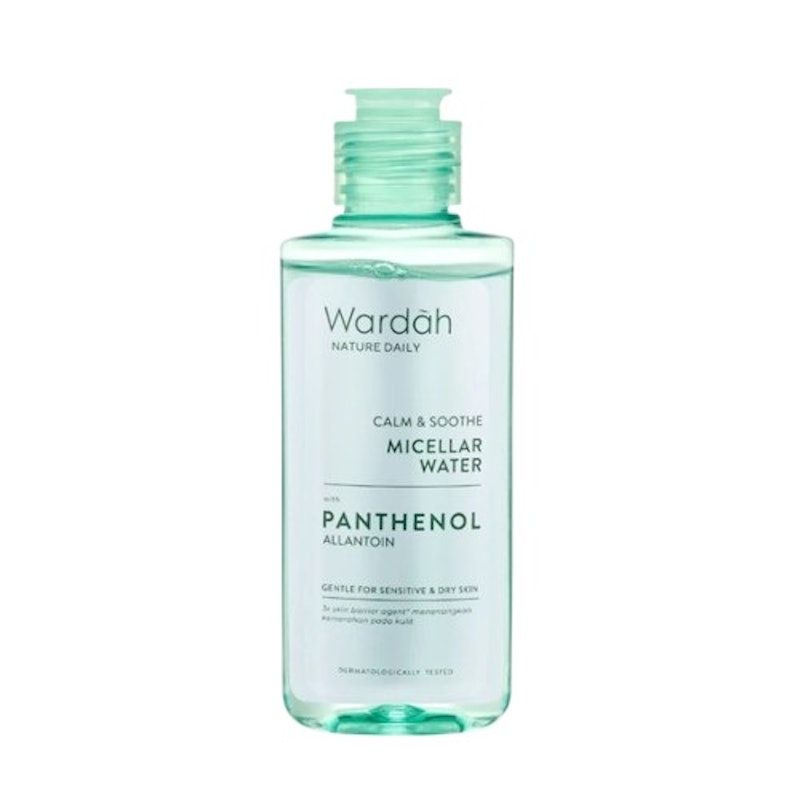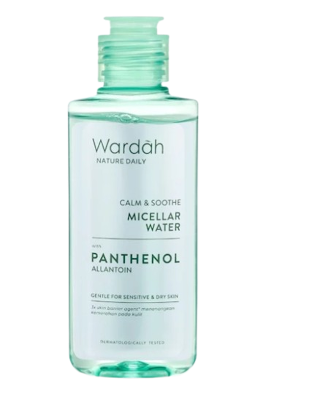 Wardah Nature Daily Calm & Soothe Micellar Water membersihkan wajah, menghidrasi kulit, dan menenangkan kulit sensitif tanpa iritasi. Bebas alkohol dan cocok untuk kulit kering.